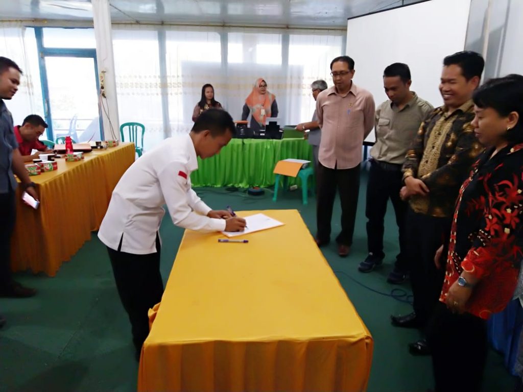 Anggota Bawaslu Kabupaten Kapuas Hulu Theodorus Lanting, S.E. saat Menandatangani Berita Acara Penetapan Hasil DPTb2.