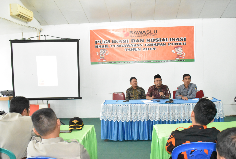 Putussibau, Jum'at 17 Mei 2019 Badan Pengawas Pemilu Kabupaten Kapuas Hulu Melaksanakan Kegiatan Publikasi dan Sosialisasi Pangawasan Tahapan Pemilu Tahun 2019 di Aula Hotel Mitra Sentosa Jl. K.S. Tubun Putussibau Utara.
