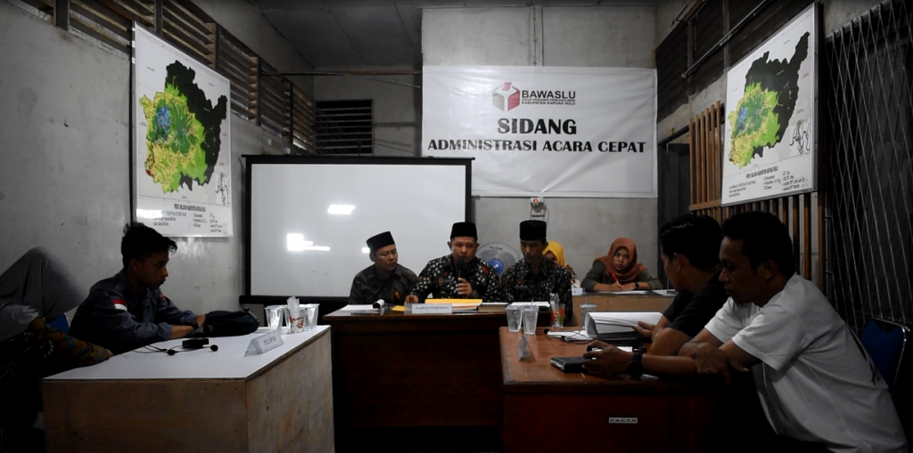 Ketua saat memimpin sidang administrasi acara cepat (dokumentasi:BawasluKh)\n\n\n\nMelalui rapat pleno yang dipimpin oleh Ketua Bawaslu Kapuas Hulu Musta’an,Bawaslu\nKapuas Hulu memutuskan untuk melakukan agenda sidang administrasi acara cepat\ndengan dihadiri oleh satu orang Panwaslucam Kalis beserta satu orang staf serta\nEmpat orang Komisioner KPU Kabupaten Kapuas Hulu. Berdasarkan hasil dari\nkeputusan sidang administrasi acara cepat maka Bawaslu Kabupaten Kapuas Hulu\nmeminta kepada KPU Kabupaten Kapuas Hulu untuk melaksanakan Pemungutan Suara\nUlang (PSU) di Tempat Pemungutan Suara (TPS) 01 Desa Semerantau, Kecamatan\nKalis.