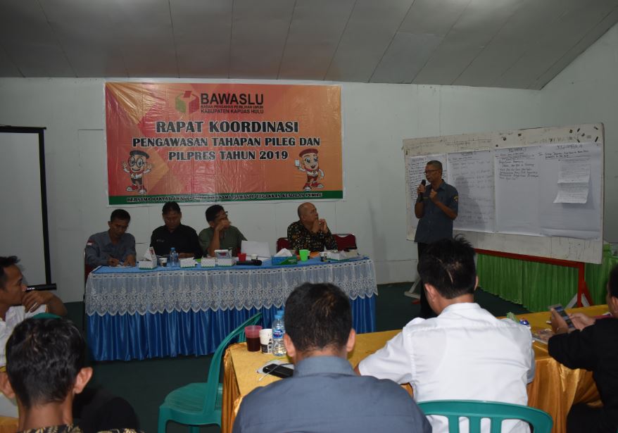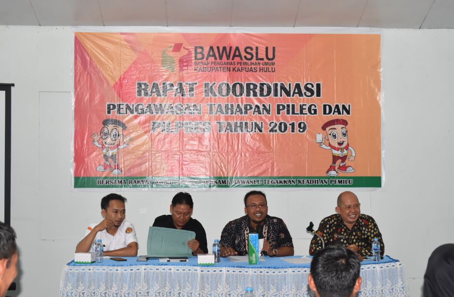 Putussibau-Dalam rangka mempersiapkan pengawasan jelang minggu tenang dan pungut hitung Pileg dan Pilpres yang akan dilaksanakan pada Rabu (17/4) pekan depan, Bawaslu Kabupaten Kapuas Hulu Mengadakan Rapat Kordinasi Pengawasan Tahapan Pileg dan Pilpres Tahun 2019. Selain mengundang Panwaslu masing-masing kecamatan untuk di berikan pemahaman mengenai tata cara menggunakan Aplikasi Siwaslu (Sistem Pengawasan Pemilu), kegiatan Rapat Koordinasi ini juga dihadiri oleh Anggpta Bawaslu Provinsi Kalimantan Barat, Mohamad.