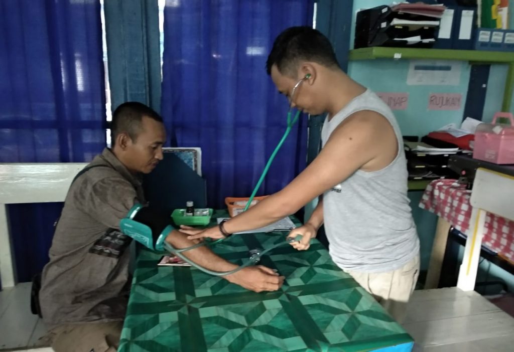 Petugas saat melakukan pengecekan dan pengobatan pengawas Kecamatan Bunut Hilir (dok: Deni Kusnadi)\n\n\n\n